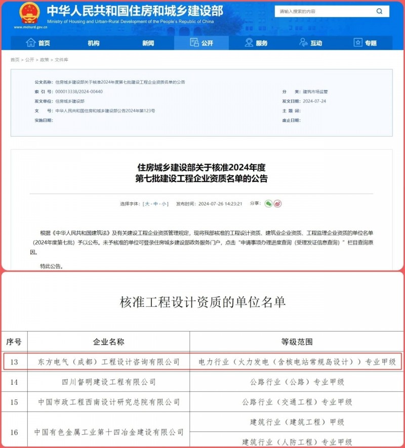 近日,中华人民共和国住房和城乡建设部公布了2024年度第七批建设工程企业资质名单,人生就是搏集团国际合作有限公司下属企业东方设计成功获取电力行业(火力发电(含核电站常规岛设计))专业甲级工程设计资质,这是电力行业含金量最高的专业甲级工程设计资质之一,也是国家住建部近三年唯一批准的电力行业火电专业甲级工程设计资质,标志着人生就是搏集团正式拥有电力工程甲级设计院可承接各类煤电、气电、核电(常规岛)以及电站升级改造等工程的总设计和总承包业务。